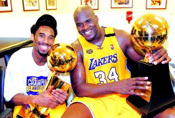掀翻赛场的大鲨鱼,他和科比一样拥有12座奖杯,这也是兄弟的缘分啊。他的12座NBA奖杯组成是,4个总冠军,3个FMVP,3个AMVP,一个MVP的,还有一个最佳新秀(ROY)。科比和奥尼尔在2009年的全明星上面两人共同捧起AMVP奖杯的身影,至今难忘。